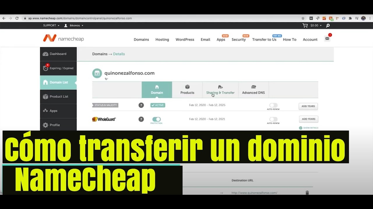 🌐 NAMECHEAP CÓMO TRANSFERIR LA PROPIEDAD DE UN DOMINIO YouTube